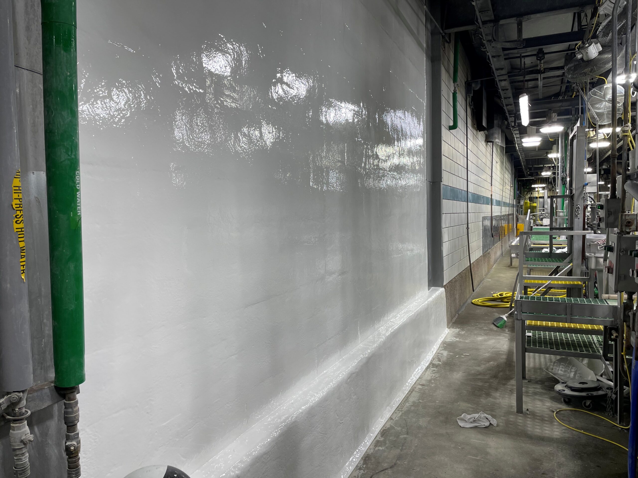 Polyurea coating systems are well-suited for food and beverage processing environments where sanitation, moisture control, and durability are critical. When properly specified and installed, polyurea provides a seamless, non-porous surface that helps mitigate the risk of moisture intrusion, microbial harborage, and contamination in regulated areas.